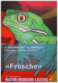 Vom 19. September 2009 bis am 10. Januar 2010 zeigt die Künstlerin Bee Egli ausgewählte Bilder ihres Schaffens zum Thema «Frosch». Betrachtende erhalten einen Eindruck von der Farb- und Formenvielfalt dieser Tiergruppe. Ein Plädoyer für die Schönheit der Natur.